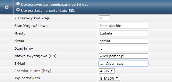 Generowanie CSR (żądanie certyfikatu)