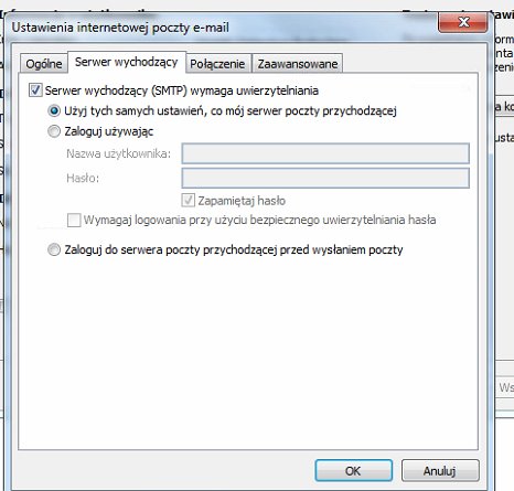 Aby poprawnie skonfigurować własny program pocztowy należy podać w konfiguracji poniższe...